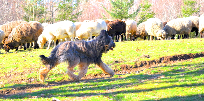 Am/Can Ch Déjà Vu Back Seat Driver, CGC, TDI, RA, PT, JHD-s, TT, CD, Am/Can RN “Nash” tends the flock on the graze (Photo Courtesy of G. LaRoche)